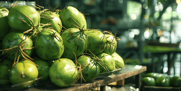 Fresh and semi-husked coconuts sourced from Kerala, ideal for food, oil, and cosmetic uses.